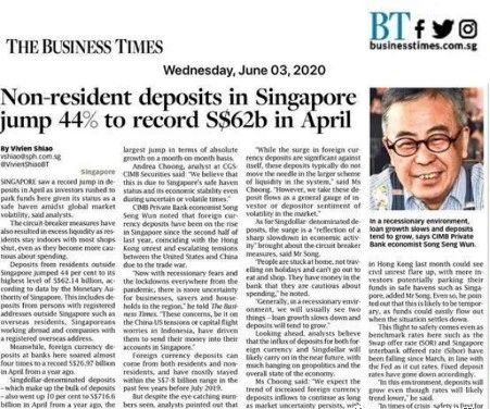 - 根據(jù)新加坡金融管理局的數(shù)據(jù)顯示,今年4月份新加坡本地銀行的外幣存款相比去年同期增長(zhǎng)了近三倍,達(dá)到了創(chuàng)紀(jì)錄的270億新幣,而非居民存款也猛漲了44%至620億新幣,達(dá)到了1991年有記錄以來(lái)的最高水平。