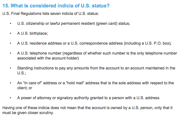 如果你只擁有其中一項標記,并不意味著你的賬戶符合“美國人身份”,但會提醒國稅局必須給予更仔細的審查。